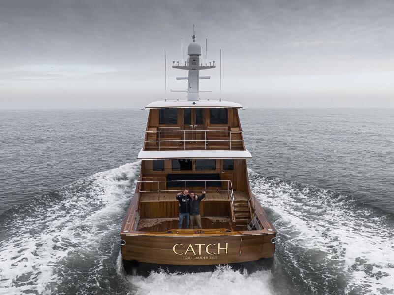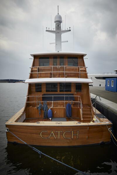 CATCH, a remarkable 87’ (26.60m) Yachtfish, stands out not only for her size and craftsmanship but also as one of the few yachts constructed by the prestigious Feadship. After an extensive winter refit at Feadship in Amsterdam, she was proudly relaunched in May 2023, marking a new chapter in her storied history. Originally delivered as Gallant Lady in 1984, she later took on the name Patriot before ultimately being rebranded as CATCH.