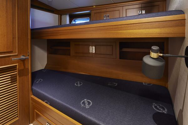 Careful planning went into the redesign and layout of the interior to maximize the space for the current owner's use and their guests. The crew cabin is an over/under to starboard with a closet and ample storage.