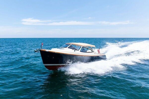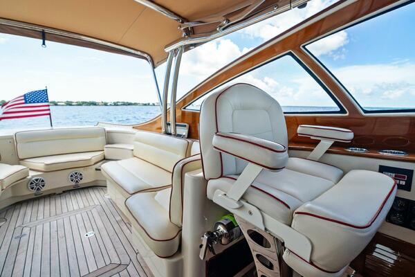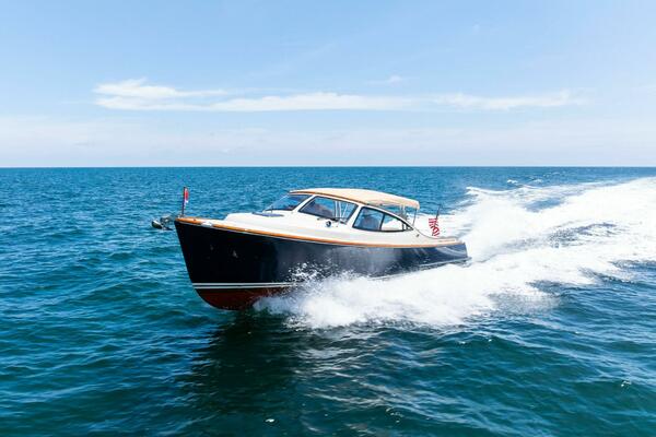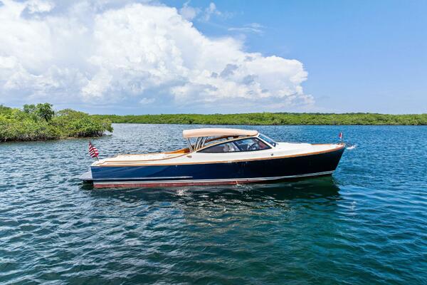 The 2008 Hinckley Talaria 38R Convertible is a high-end luxury runabout known for its classic design, meticulous craftsmanship, and advanced features.