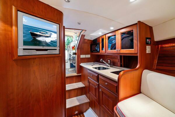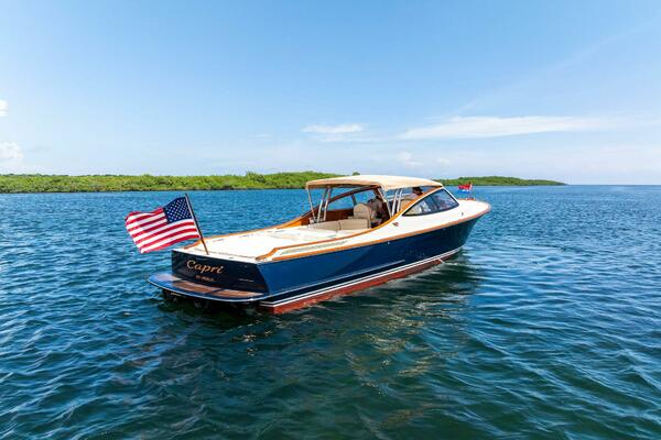 The 2008 Hinckley Talaria 38R Convertible is a high-end luxury runabout known for its classic design, meticulous craftsmanship, and advanced features. CAPRI is a well-regarded vessel, combining classic style with modern technology, making it a "serious candidate for yachting's ultimate day boat" with the added convenience of overnight cruising.