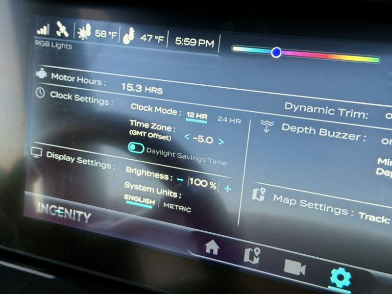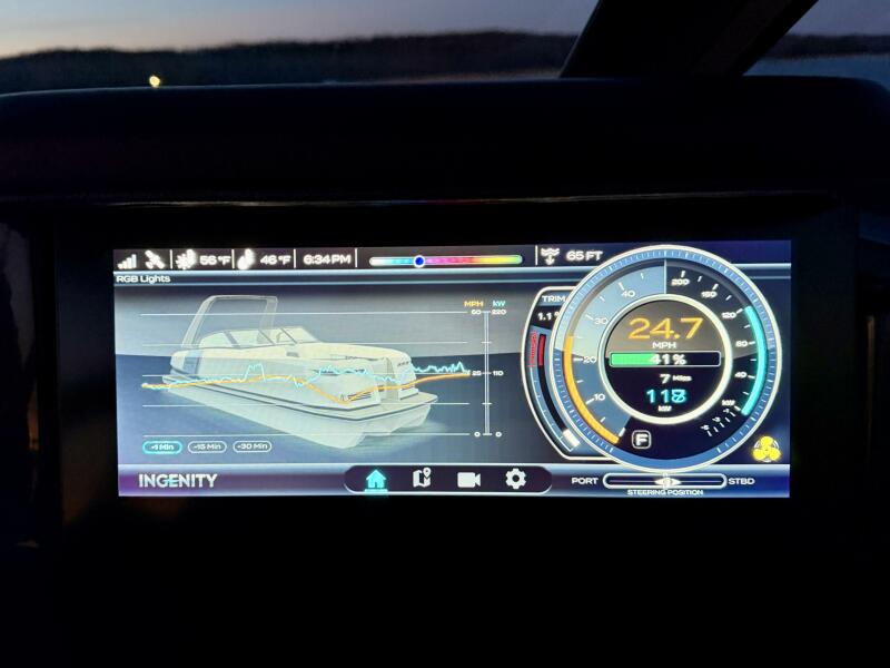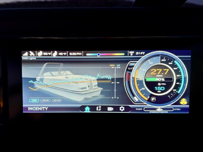 12'' Touchscreen Ingenity View User Interface w/Integrated Controls & Vessel Data (Including: Air/Water Temp., Speed/Power Consumption w/Range & Charging Status, GPS/Chartplotter, Drive Trim & Rudder Angle Indicators, Swim Platform Awareness/Rear View Camera, RGB Lighting Color Selector, & More),
