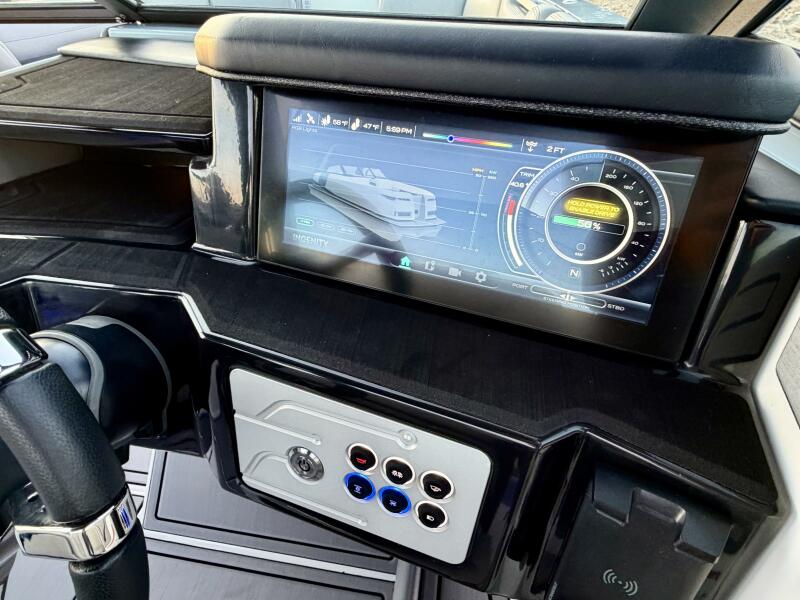 | Notable Upgrades: Upgraded JL Audio Stereo with 8 Cockpit Speakers, 2 Subwoofers, and 4 Stereo Remotes (Helm, Transom, Port/Starboard Bow Lounge Seats Ingenity Connect On-Board Telematics (Mobile App & Remote Diagnosis Capabilities) Fixed Arch w/Bimini Top Bow Sun Shade Integration Cockpit & Bow Snap-On Covers, Mooring Cover, & Winter Cover Electric Powered Telescoping Driver Seat w/Flip-Up Bolster Dometic Optimus Electronic Power Steering w/Electric Actuator Ingenity View User Interface with 12" Touchscreen with Integrated Controls and Vessel Data - GPS/Chartplotter, Air Water Temperature, Depth Finder, Speed/Power Consumption/Range, Charging Status, Drive Trim, Rudder Angle Indicator, Swim Platform Awareness Camera/Rear View, & More Isotherm Stainless Steel Refrigerator Carry-On 36Qt Igloo Cooler w/Dedicated Storage Boat Mate Tandem Axle Trailer with Aluminum Wheels, Dual Disc Brakes, Spare Tire, Guide Poles, Swing Tongue, Transom Tie-Downs, & Step-Up Ladder with Handrails Included! One Owner - Transferable Warranty thru 2027! |