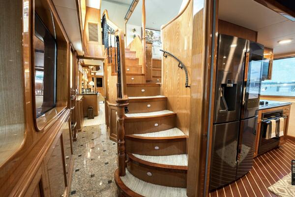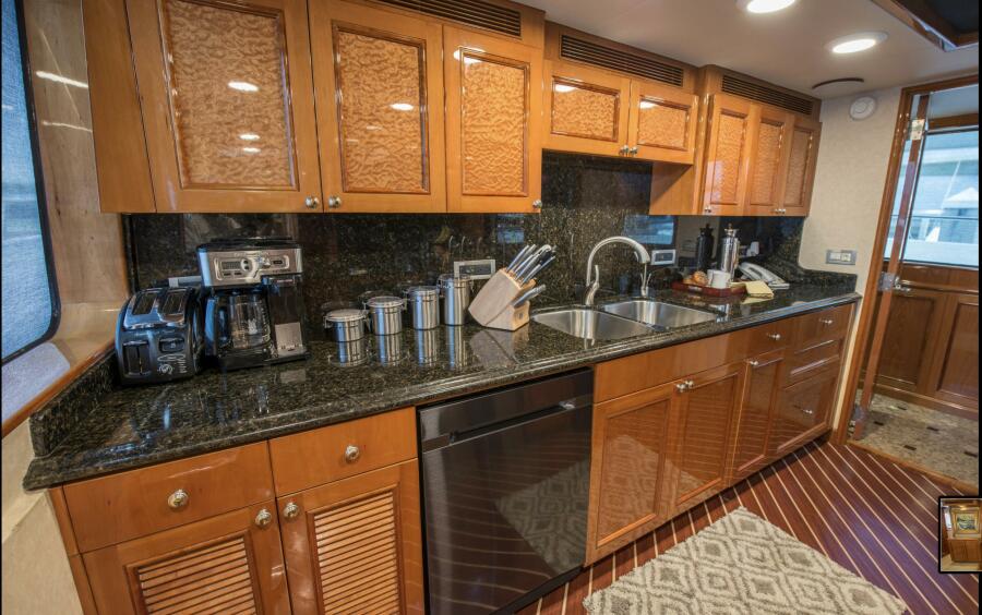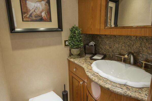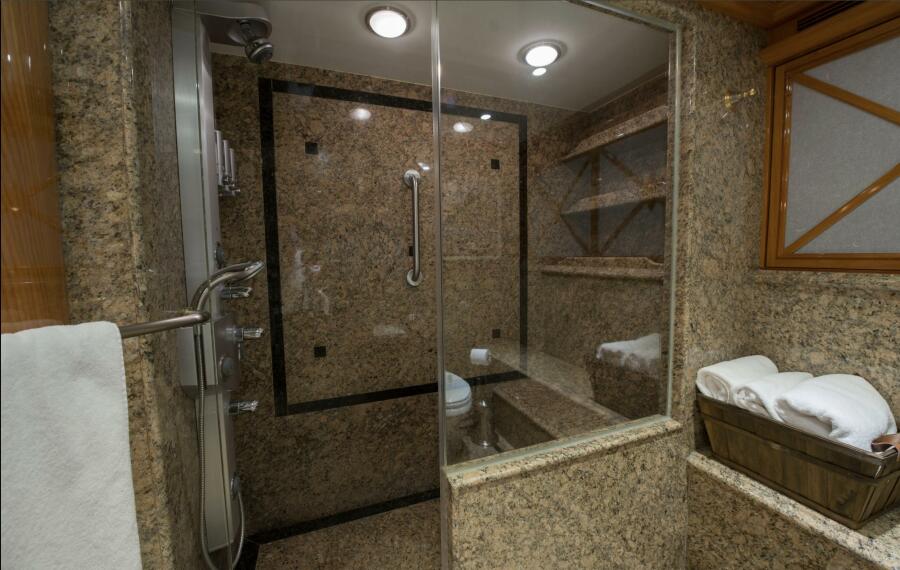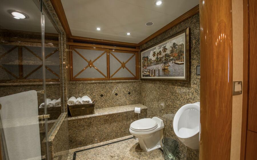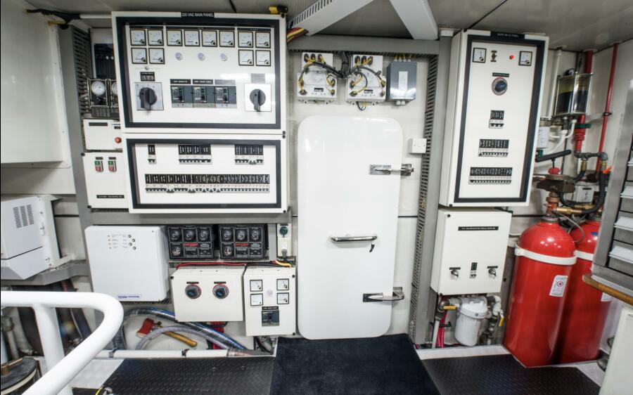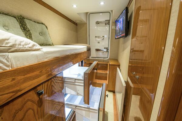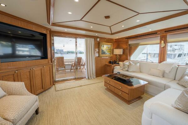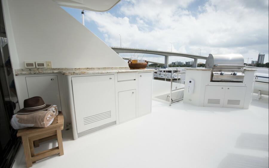 Twin Caterpillar C32 diesels (1,652 HP each, total 3,304 HP) power FOOTLOOSE to a thrilling 26-knot top speed and efficient 18-knot cruise. Her 5,300-gallon fuel tanks yield a 1,267-nm range, ideal for transoceanic runs or island-hopping. Quantum zero-speed stabilizers ensure silky rides and reliability. Upgraded Garmin electronics suite includes Four Garmin 8617's, radar, autopilot, and AIS for effortless command from the raised pilothouse or flybridge helm.